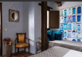 < br /> In the upper area is the attic, a very cozy room thanks to the effect that this type of roofing gives. Here you will see other 2 rooms s; one of them with 2 single beds and that has its own bathroom complete, and another with double bed, suitable for a couple. Â