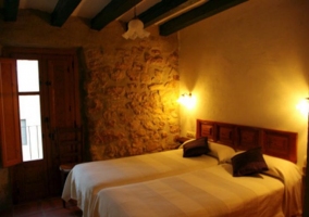 - 3 bedrooms that have been decorated, on the one hand, with a couple of simple individual beds in one of them and, 2 more, with a individual bed and a literary (2 beds). The surroundings of these rooms is rustic, with the stone walls and the wooden headers in addition to details in this material.