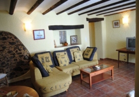 - a dining room that you will see right at the entrance of the house; and that distributes the armchairs around an auxiliary table that can function as dining table. In addition, in front of this set is the furniture with the television plasma, perfect for you to distract.
